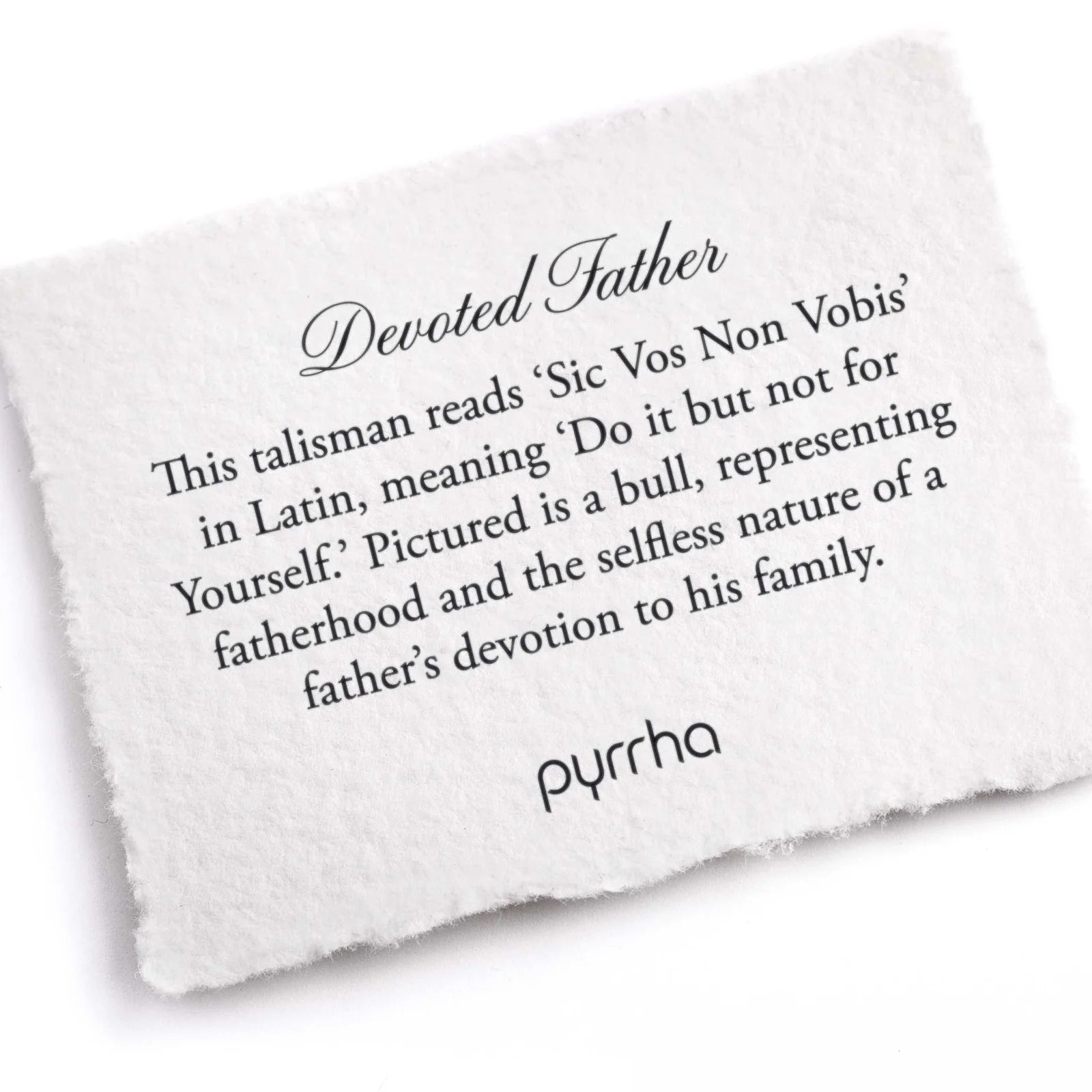This talisman reads 'Sic Vos Non Vobis' in Latin, meaning 'Do it but not for Yourself.' Pictured is a bull, representing fatherhood and the selfless nature of a father's devotion to his family.