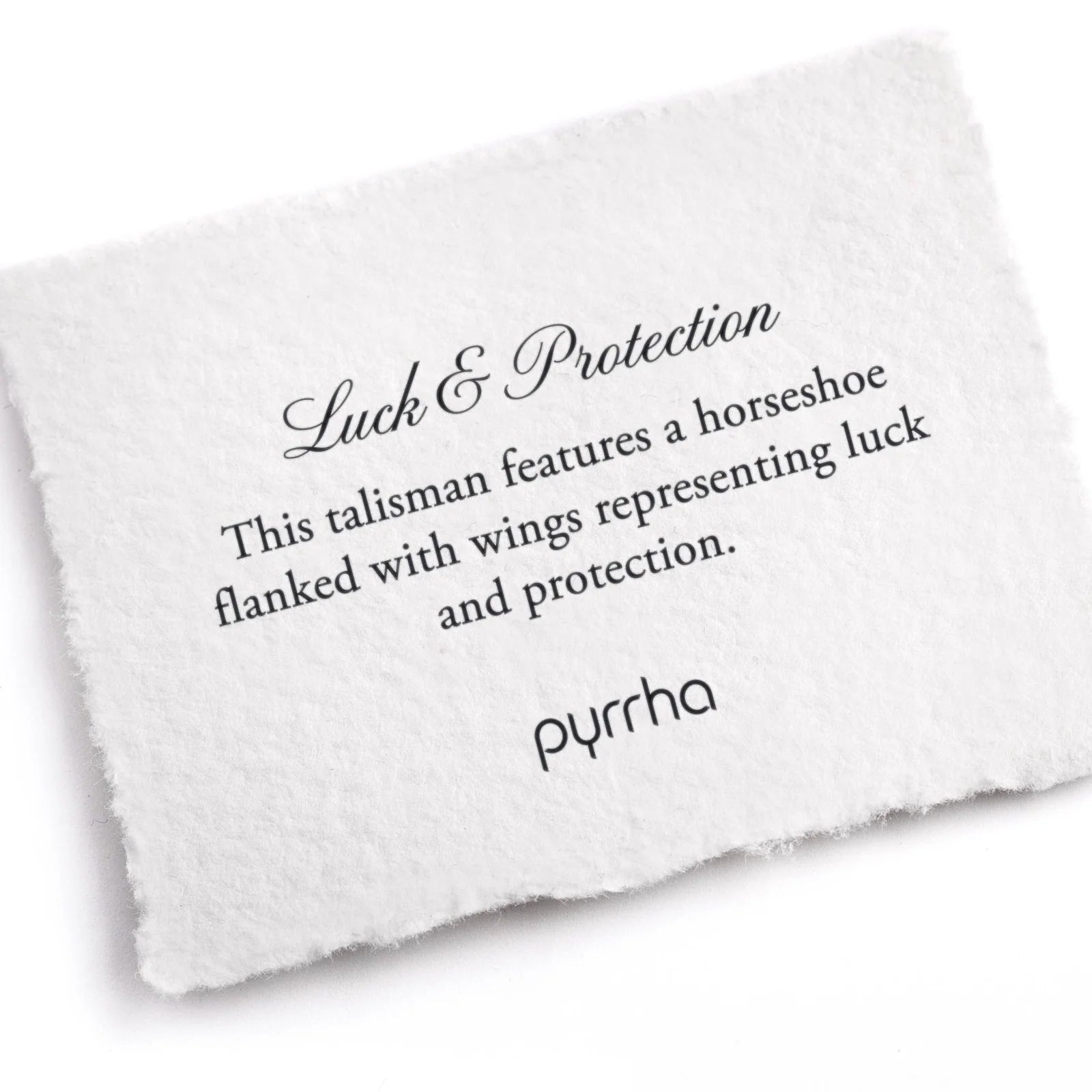 This talisman features a horseshoe flanked with wings representing luck and protection.